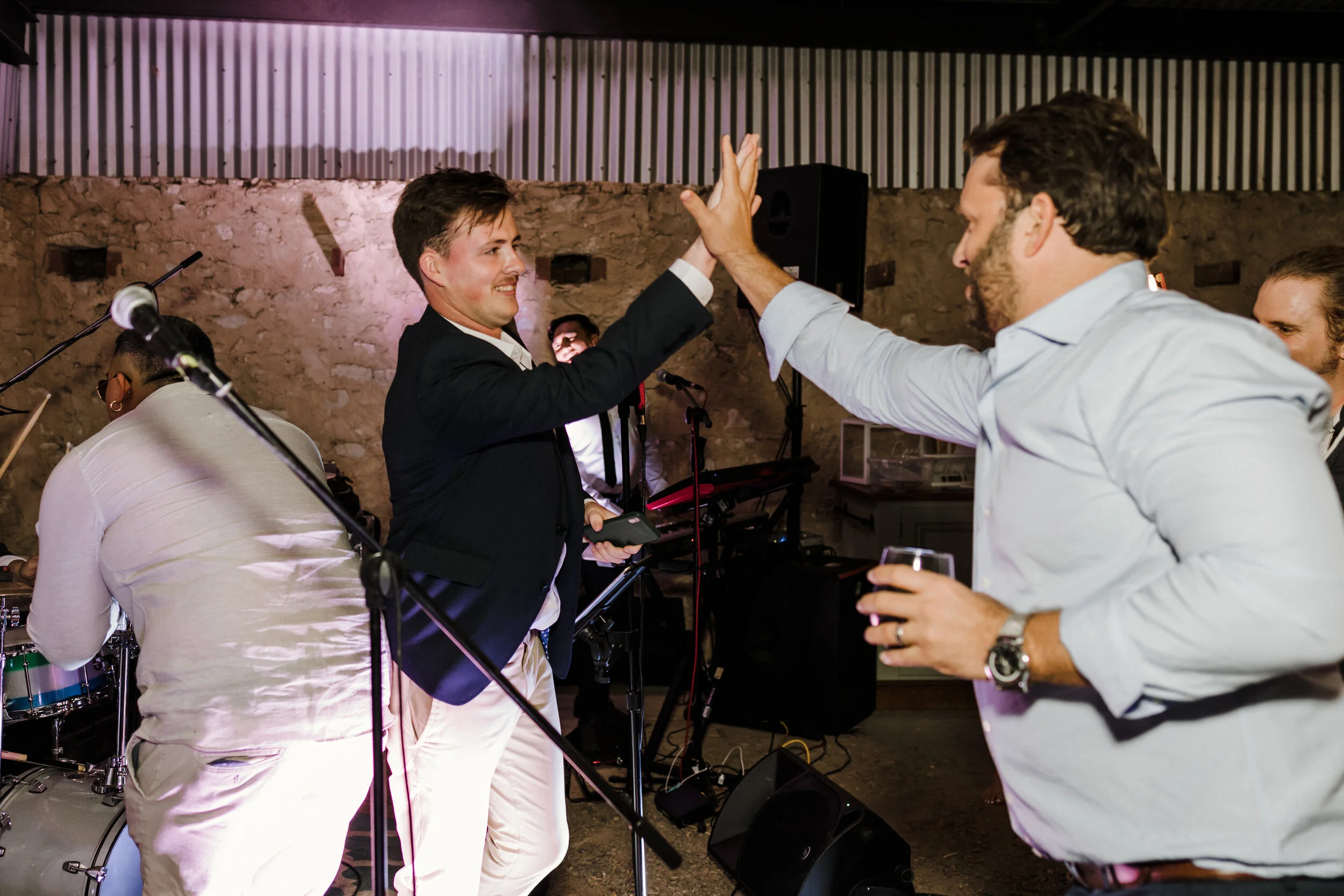 Kels and Ricky had a unique, colourful, loud, fun and creative wedding in the beautiful country setting of Currency Creek on a private property for hire. Such a stunning location with beautiful fields and lovely old buildings. Decorated thoughtfully with customised and artistic touches. I absolutely loved the bridesmaids floral wreaths instead of bouquets., so cute and creative! When the day gave way to evening, and everyone’s bellies were full from the two food trucks, the party ramped up with dancing and live music right into the night. It was fantastic.