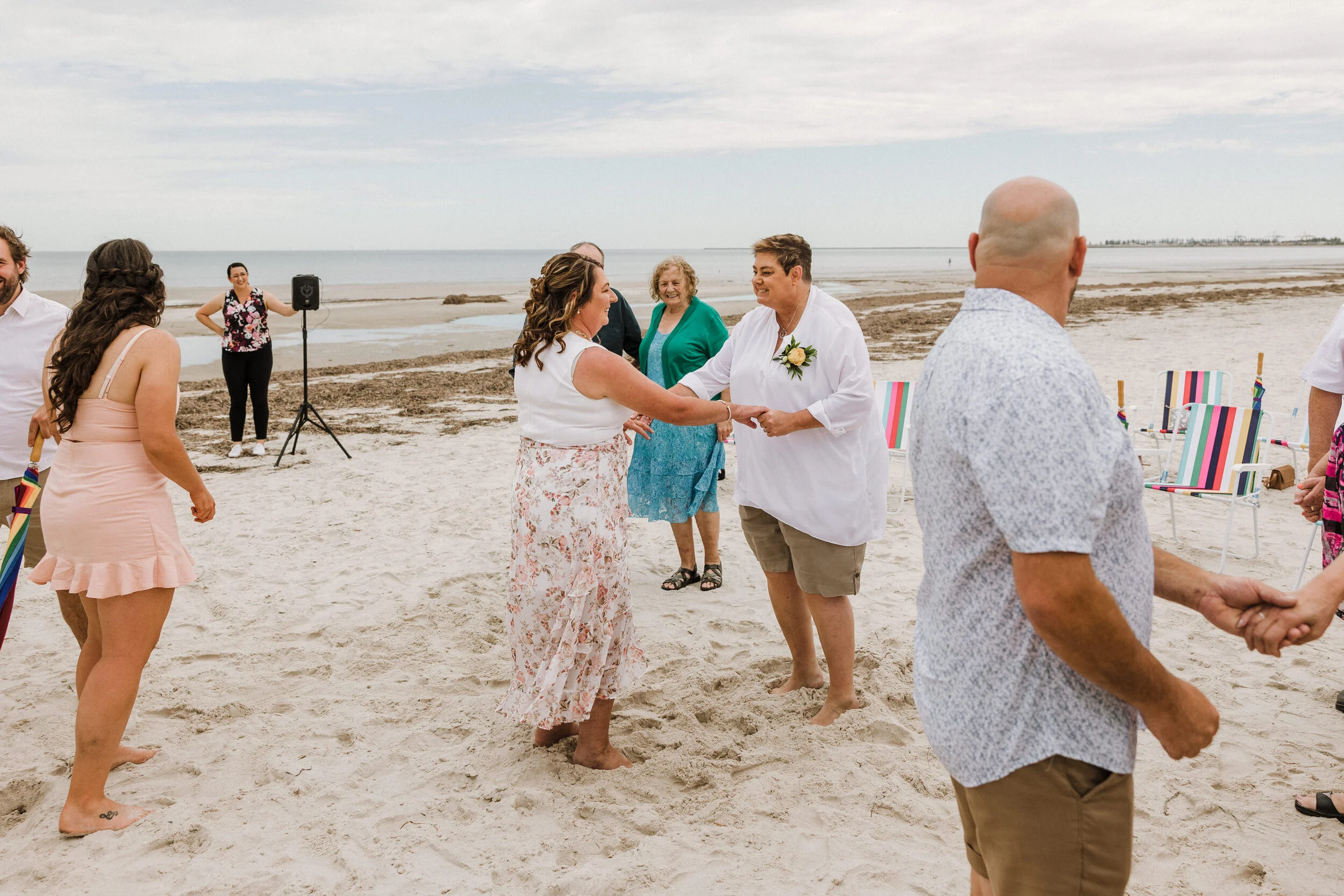 Kate and I loved everything about Jayne & Jo’s gorgeous little elopement on the beach at Largs Bay. From their feature rainbow umbrellas to the kind words that they wrote about each and every one of their guests (and that Kate handed to them after the ceremony to read and cherish). And who could forget celebrating their marriage with an impromptu dance party right their on the beach in between first kiss and signing. But most of all, their down to earth, relaxed and kind personalities just made the day!